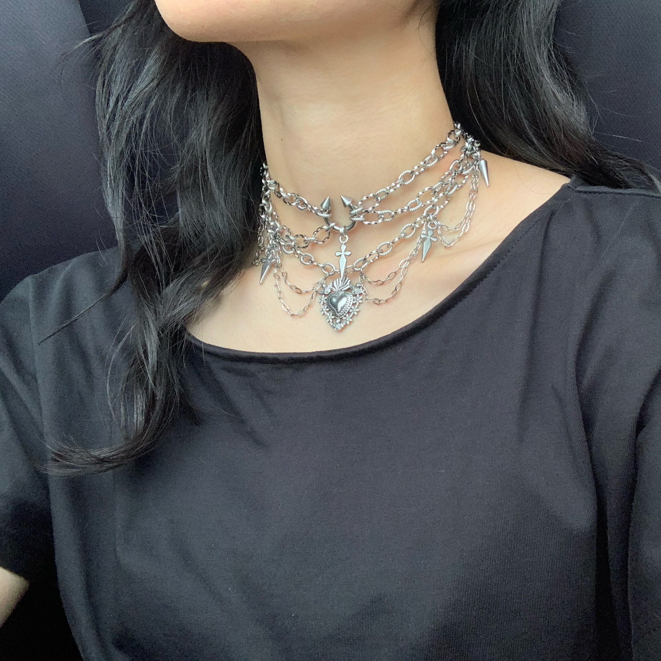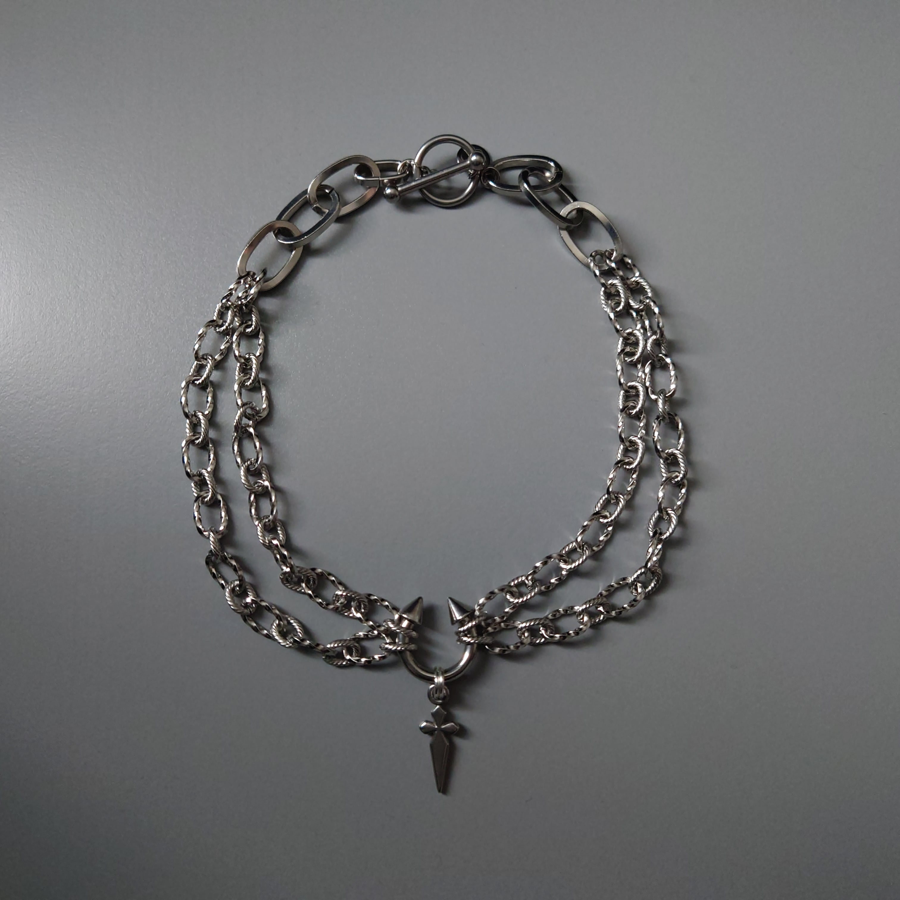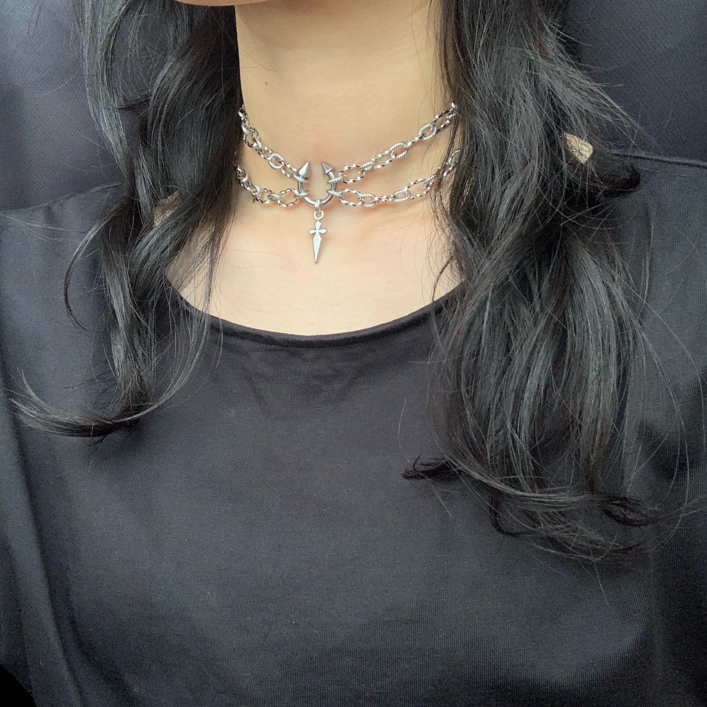 センターのボディピアスが目を引く、かっこよさとかわいさを兼ね揃えたネックレスです。