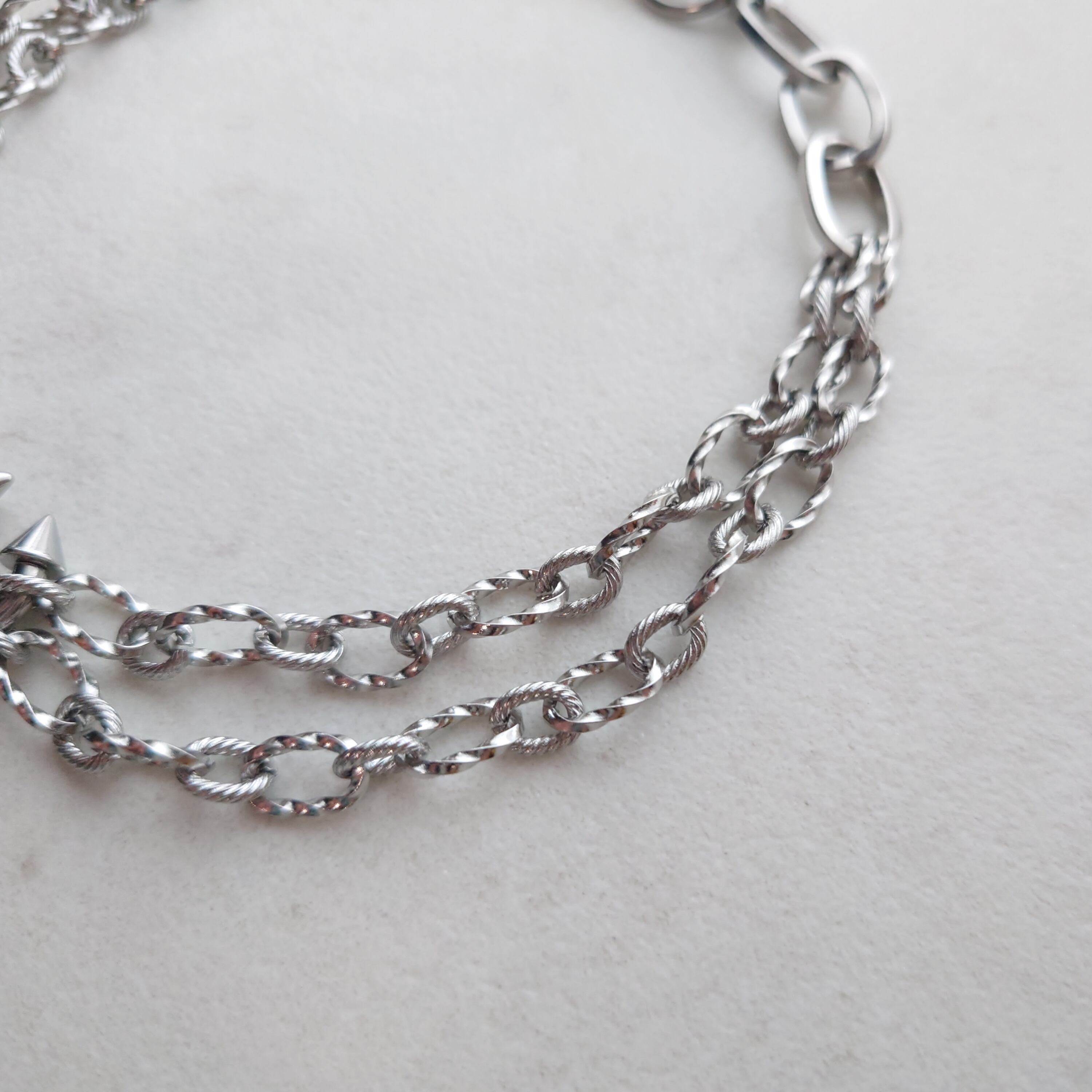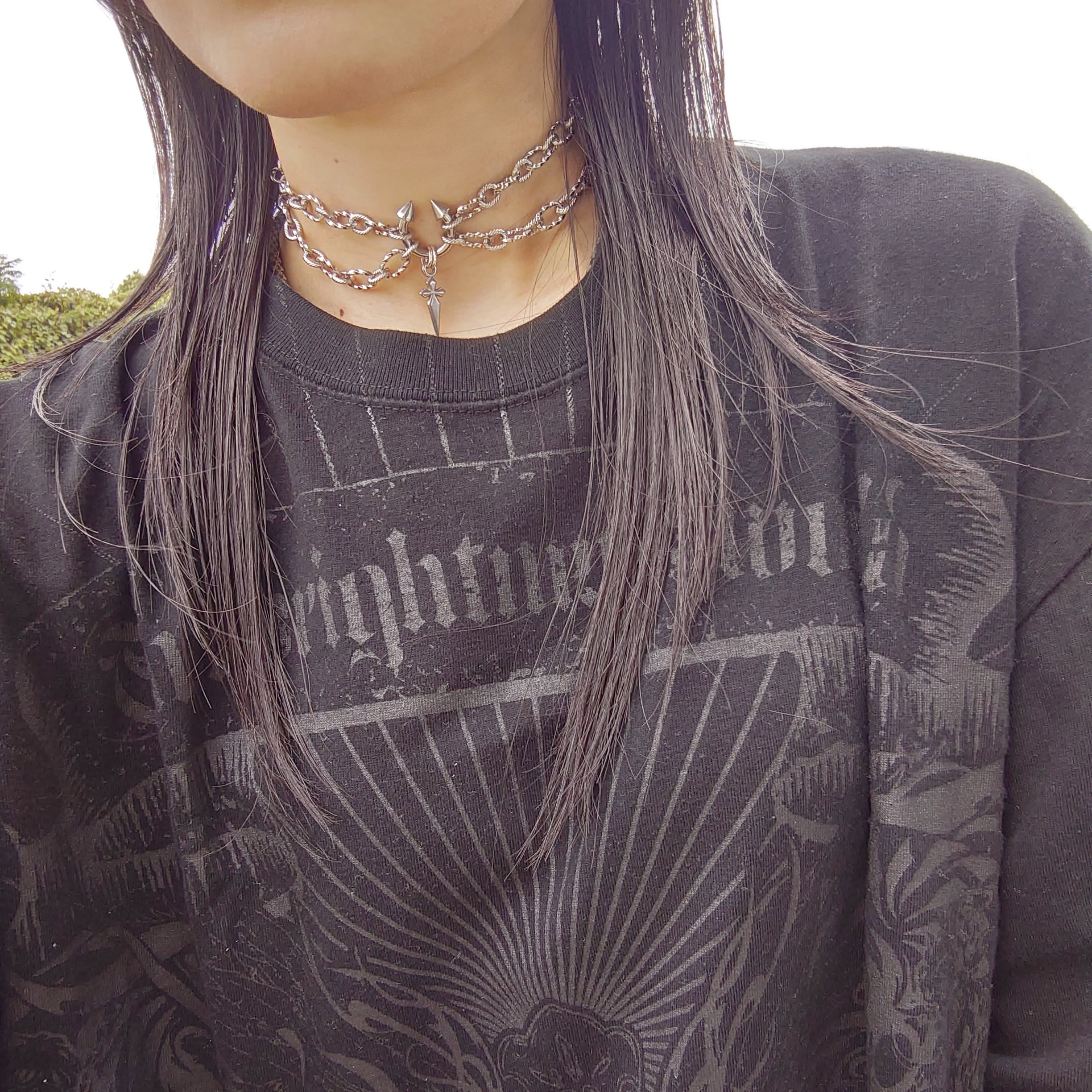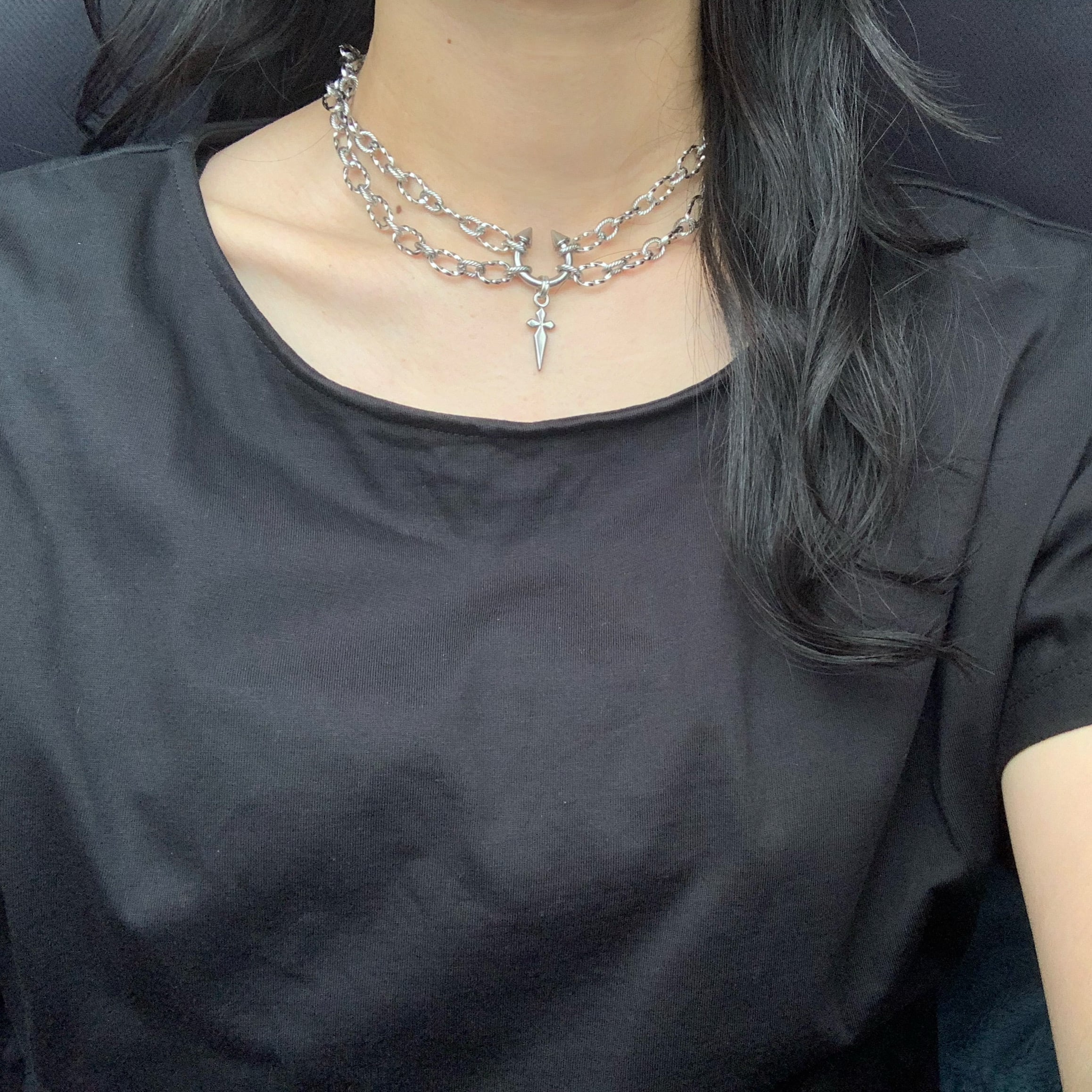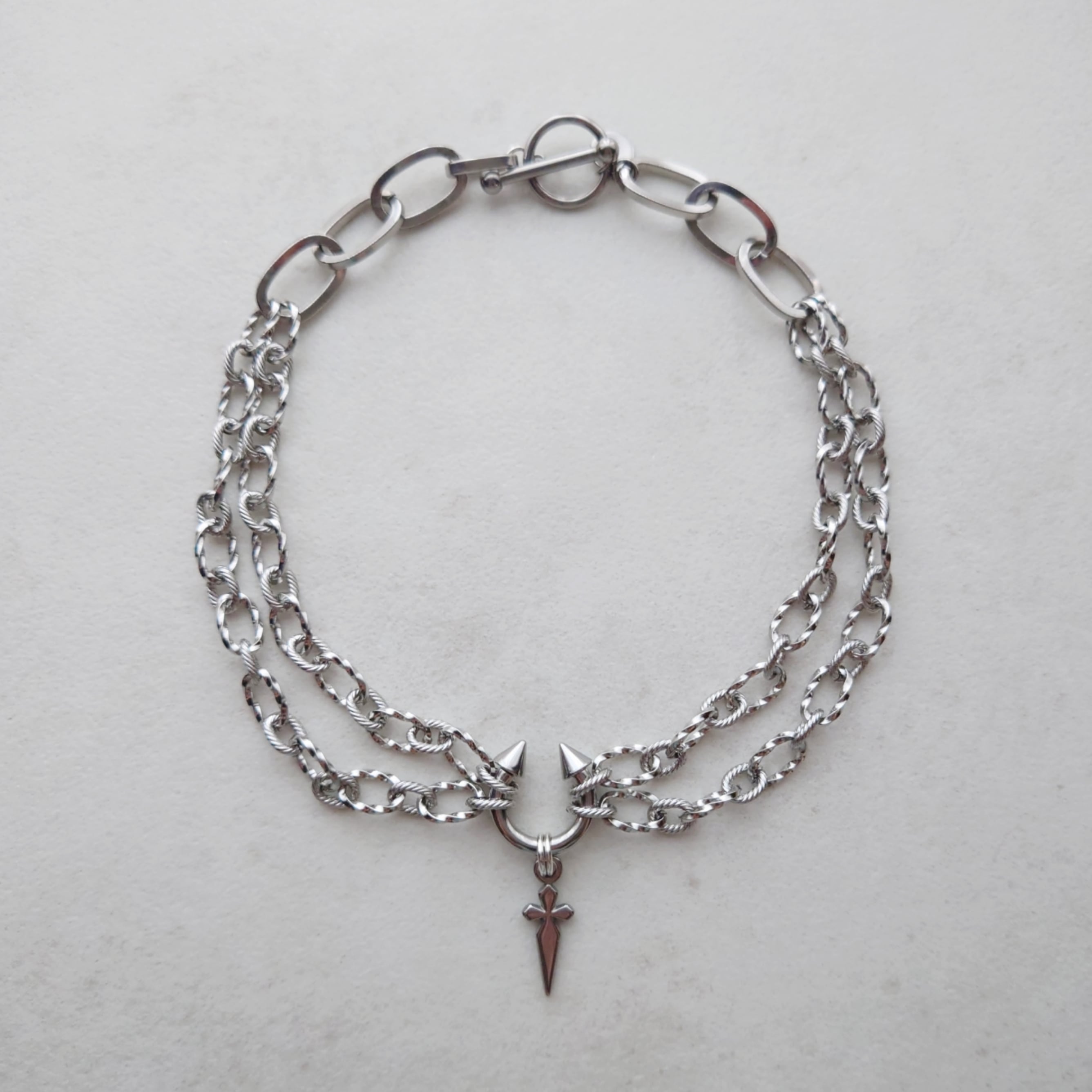 センターのボディピアスが目を引く、かっこよさとかわいさを兼ね揃えたネックレスです。