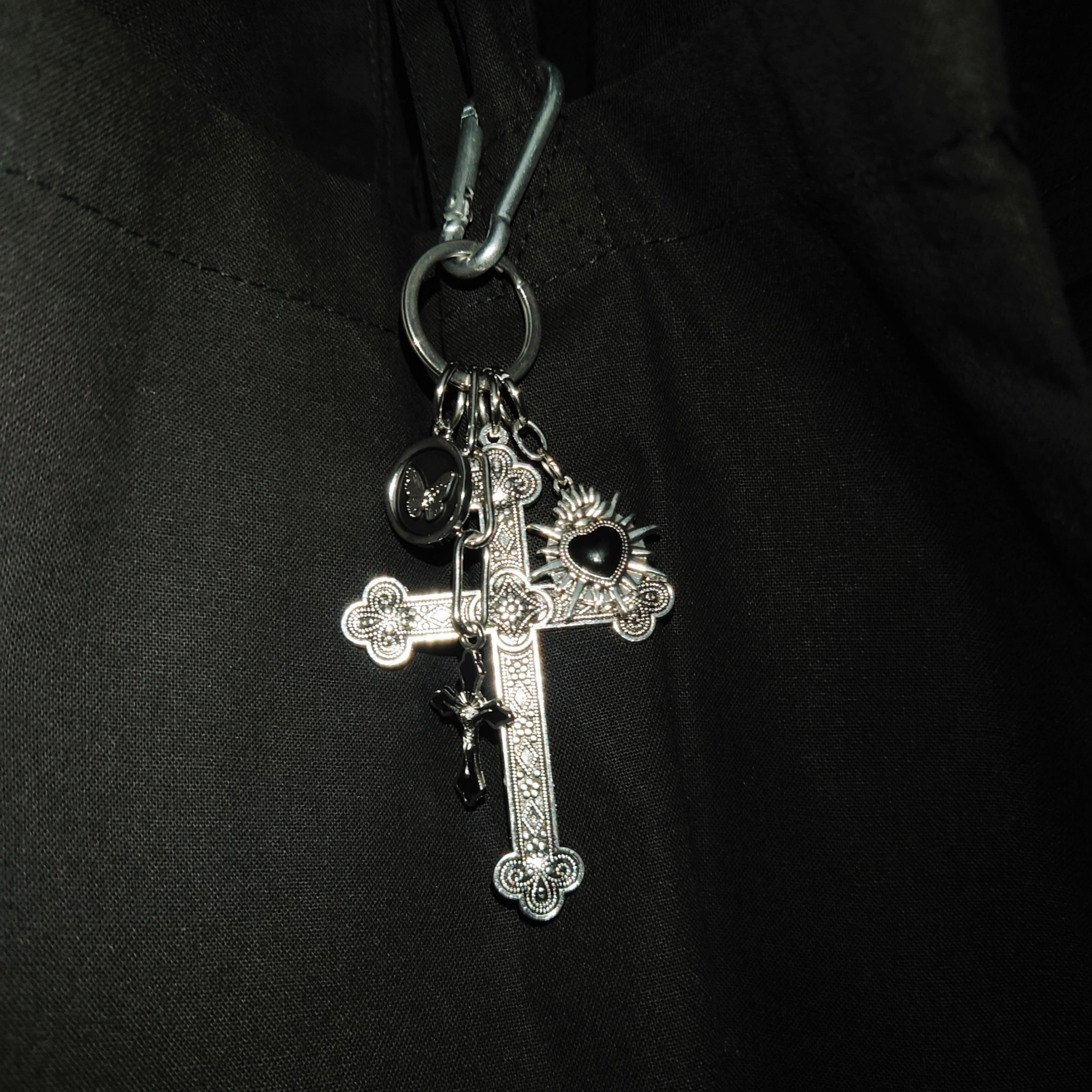 デカめのクロスチャームがいい感じの存在感です。