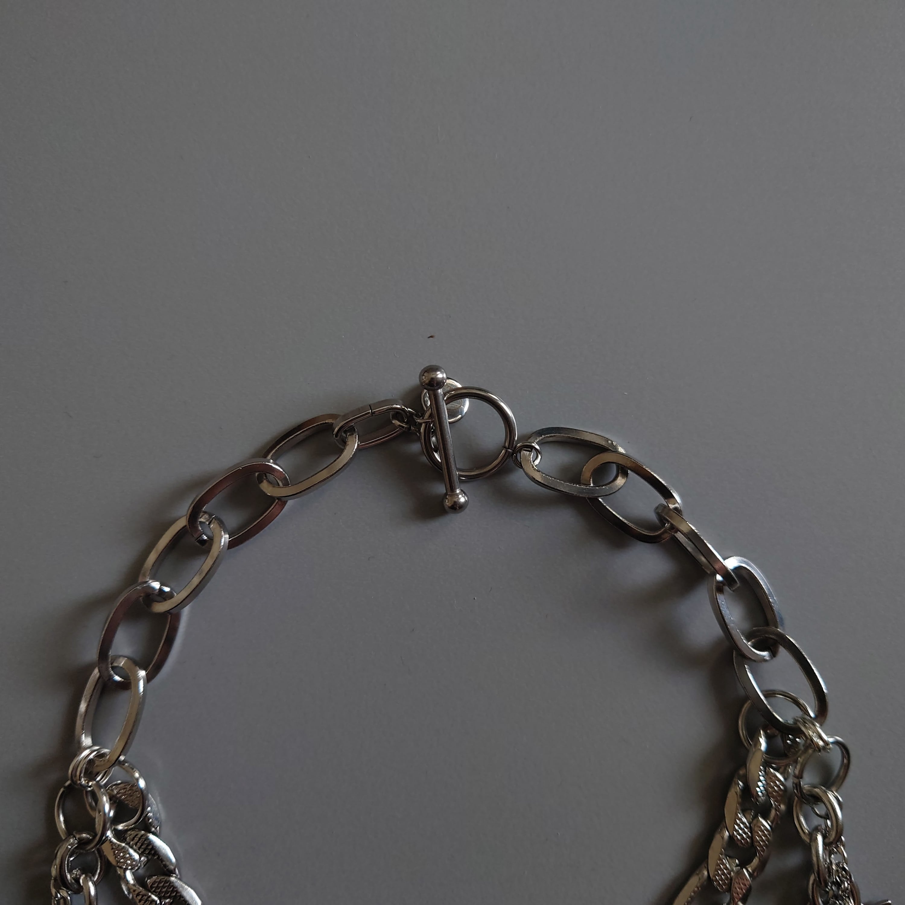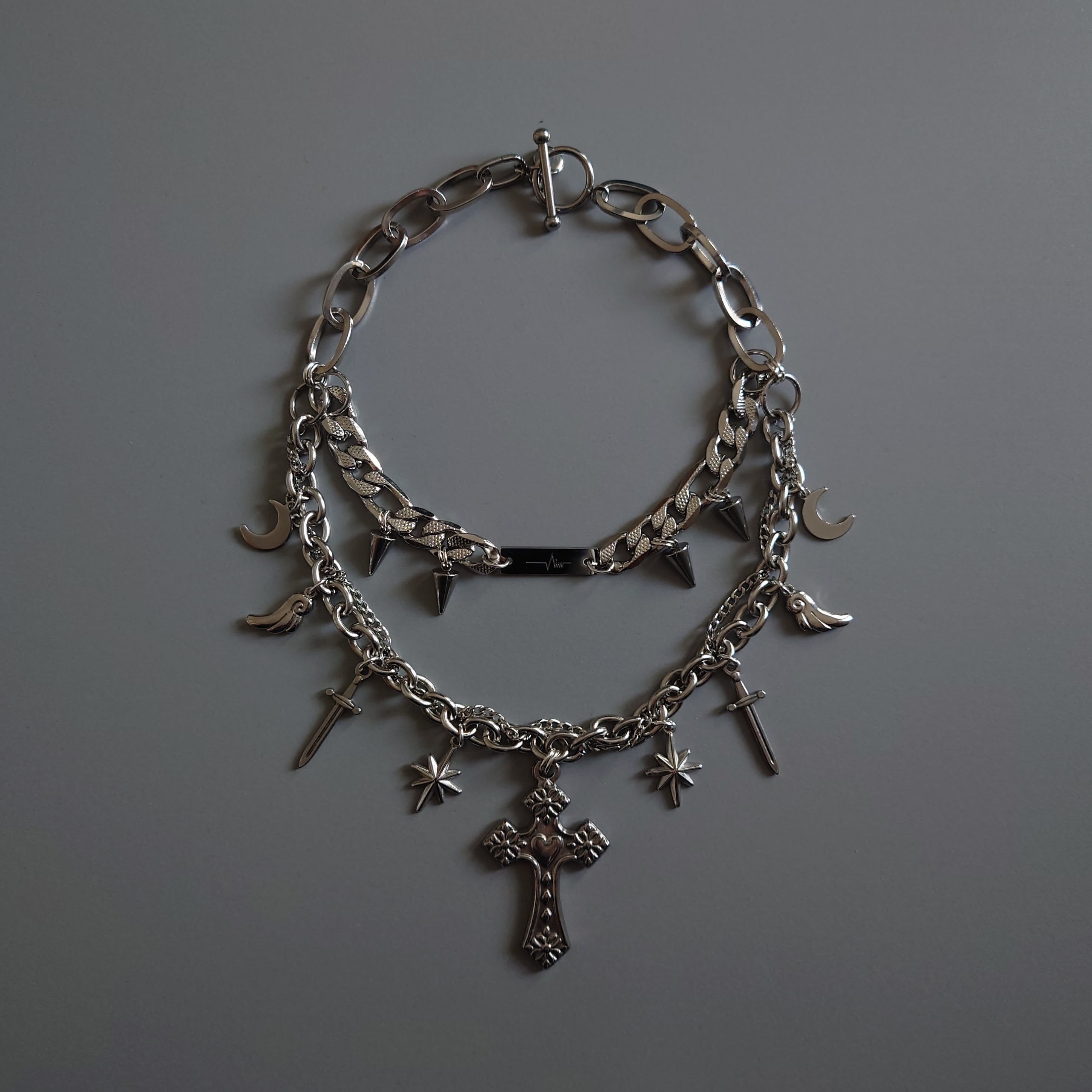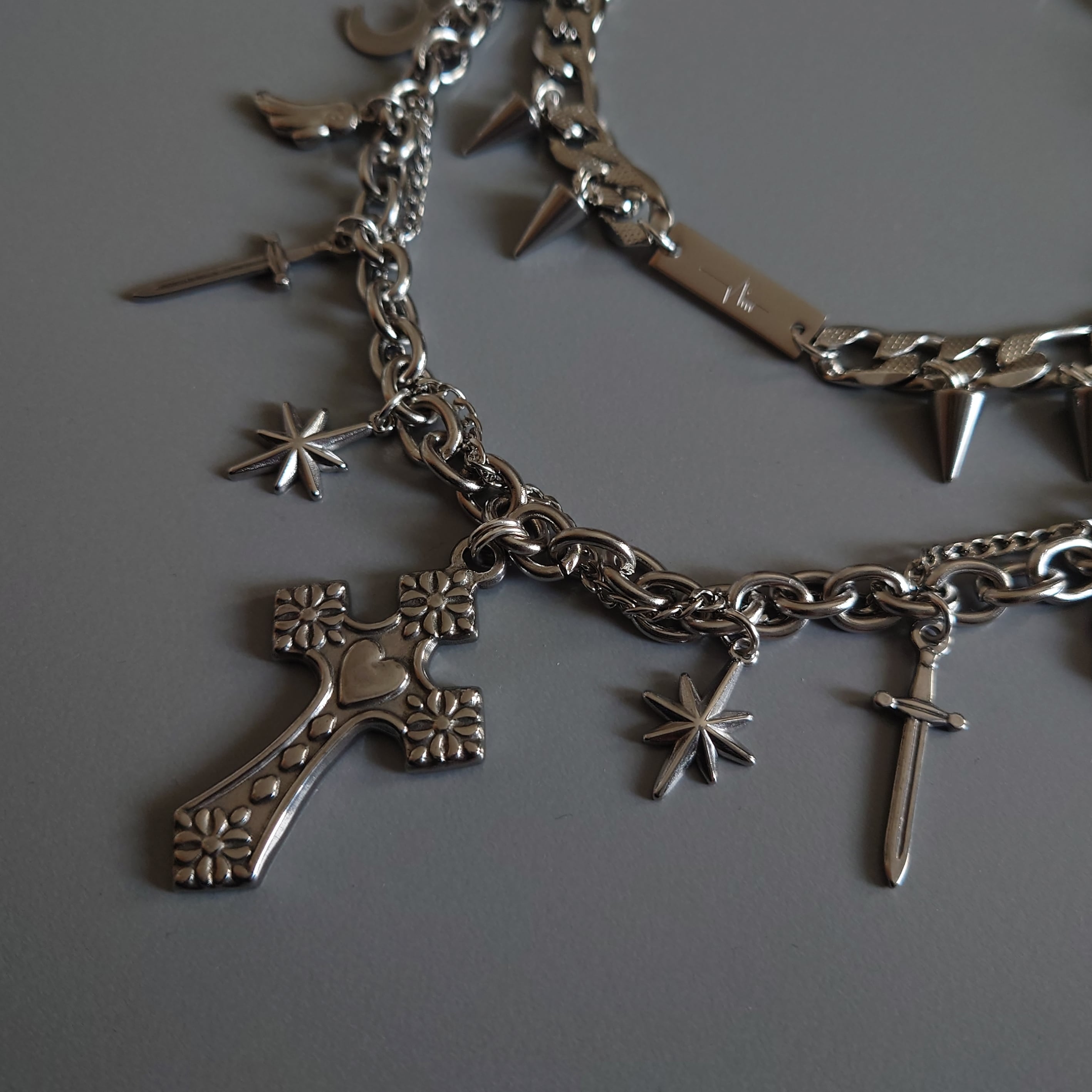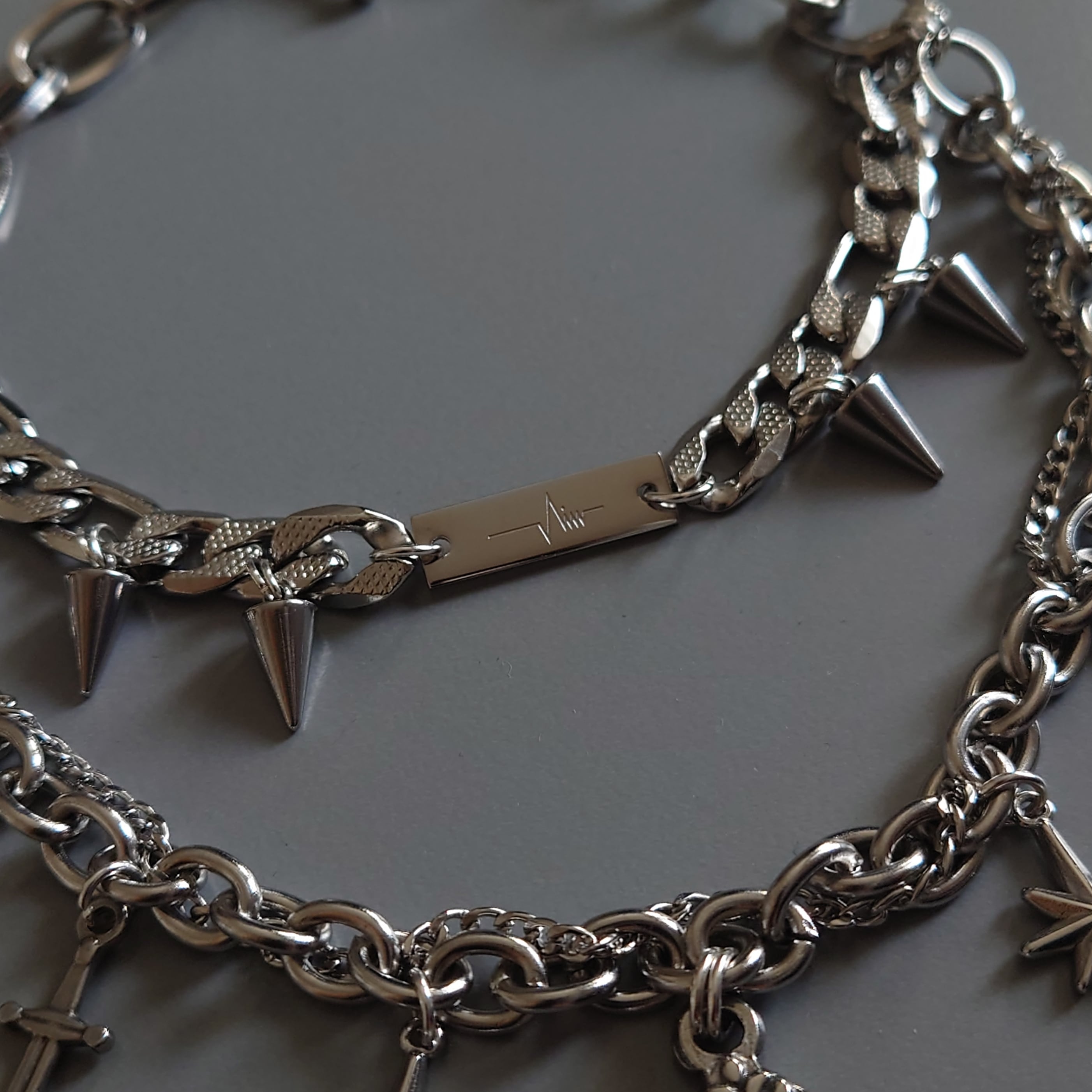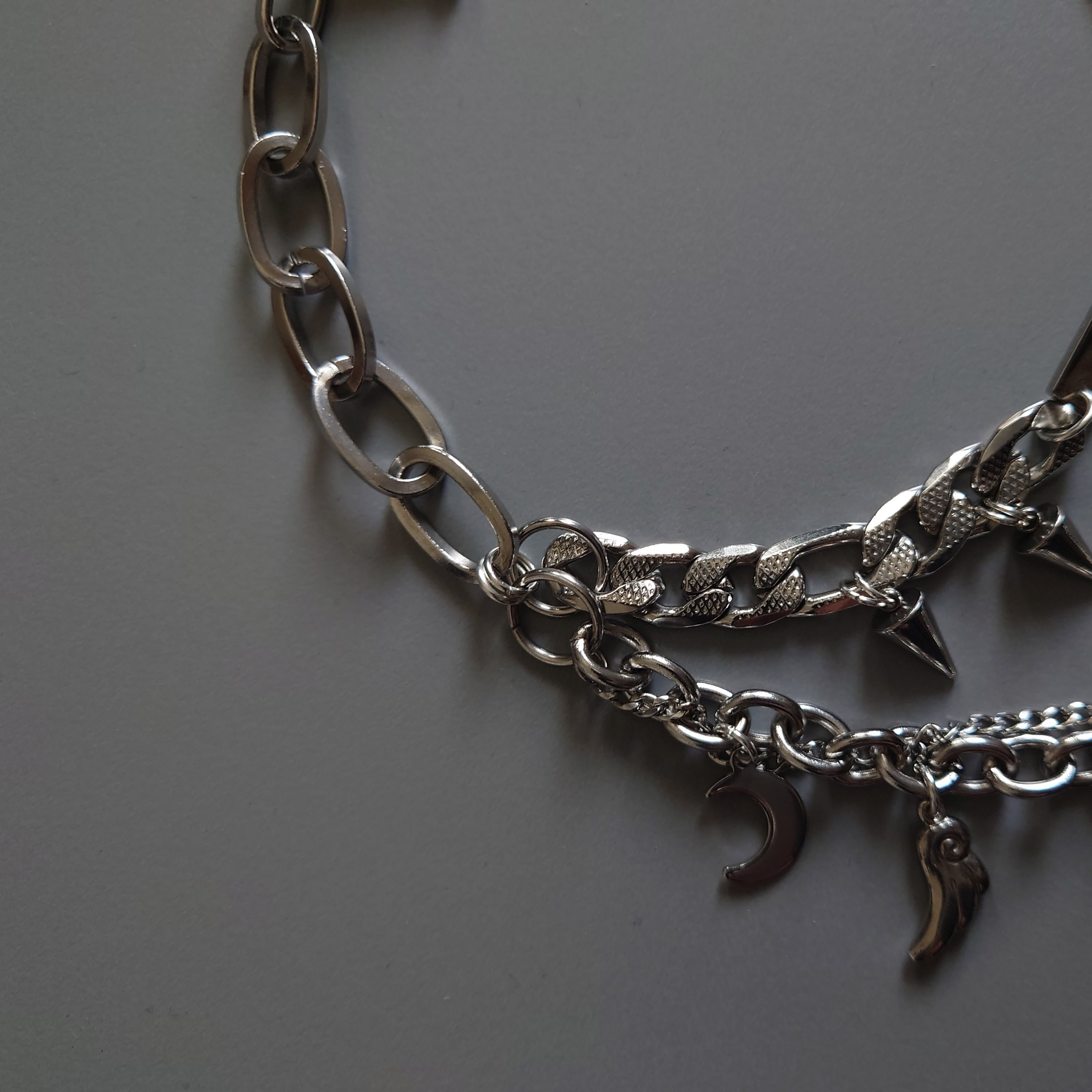 ちょっと短めに着用すると、上の段のスパイクチャームが牙みたいになってかわいいです。