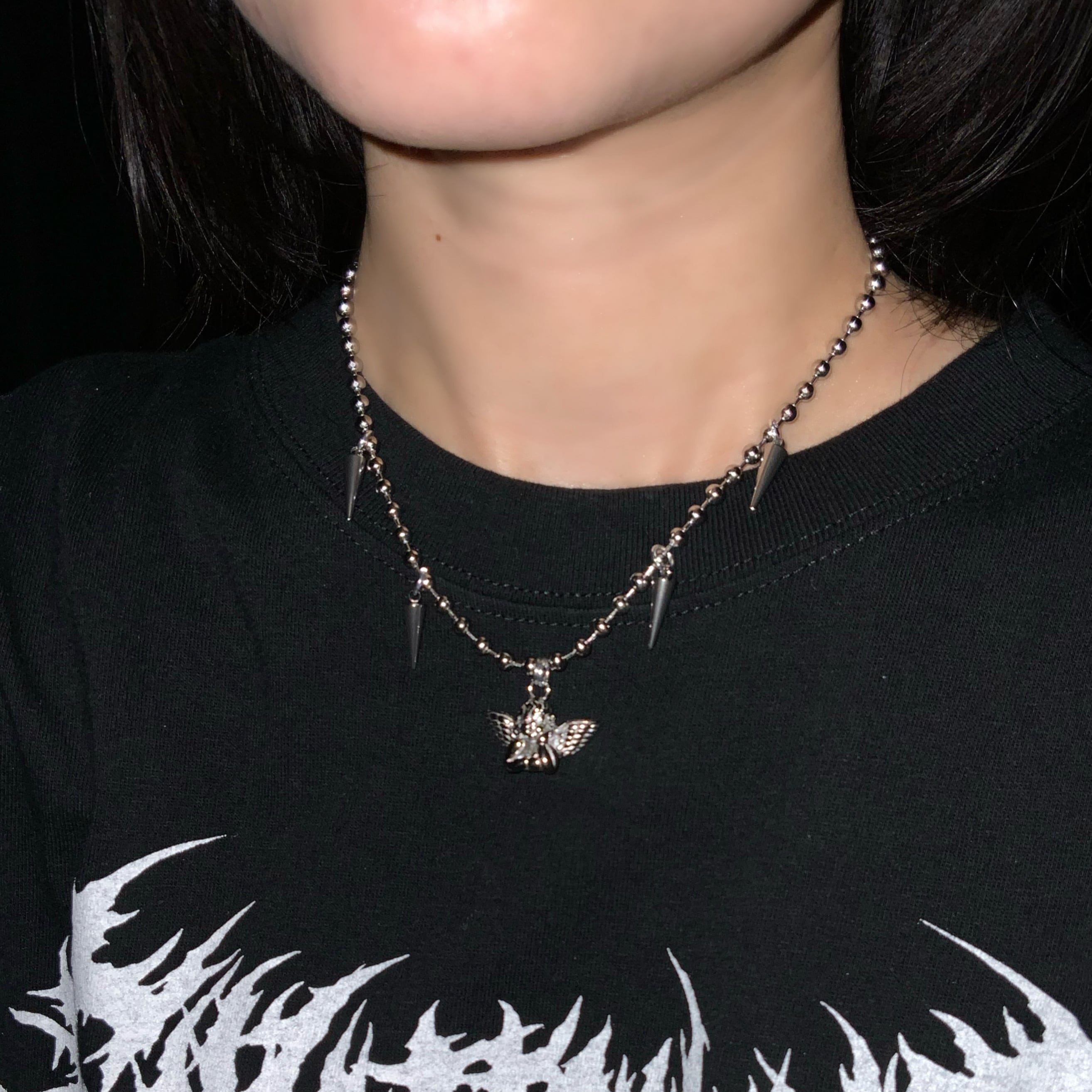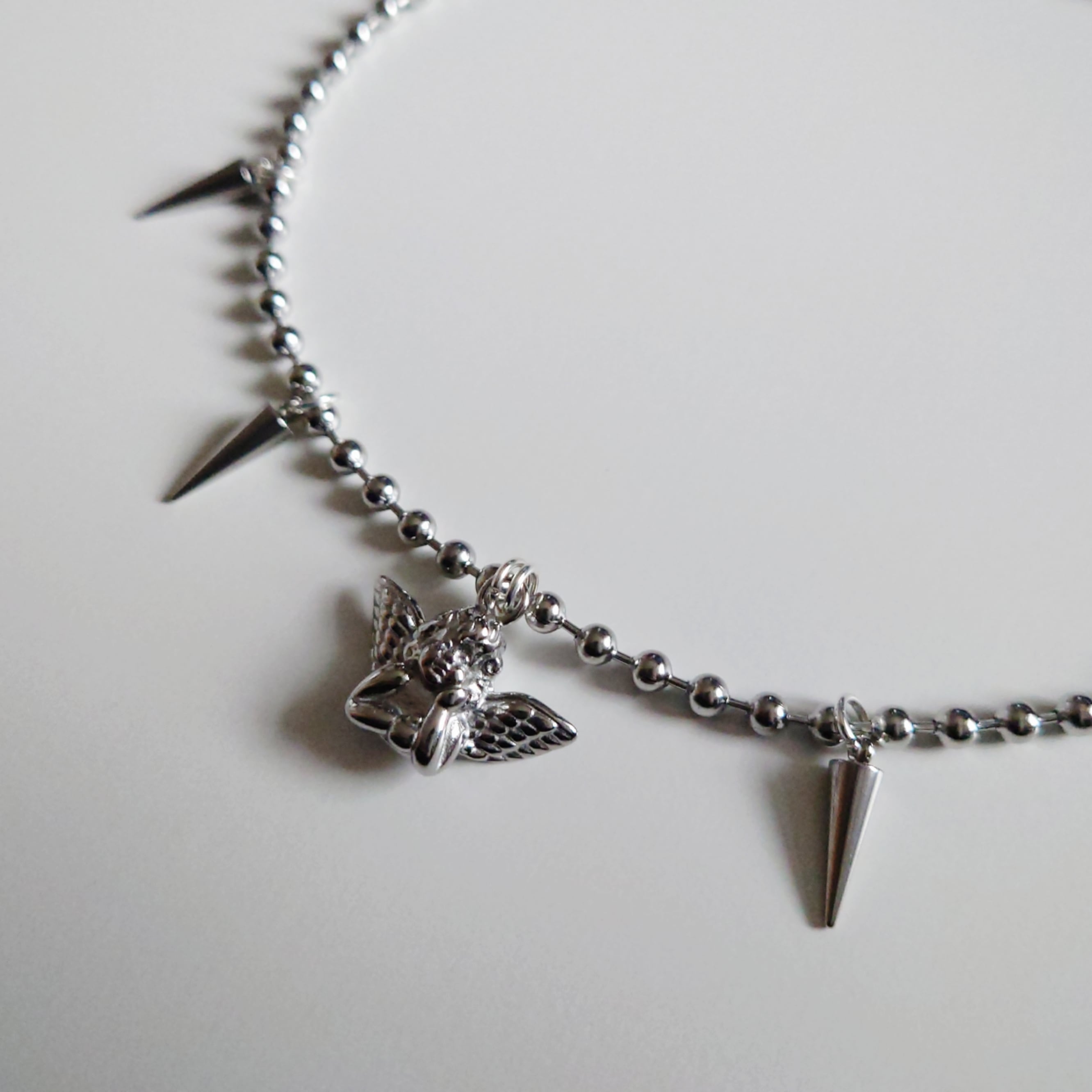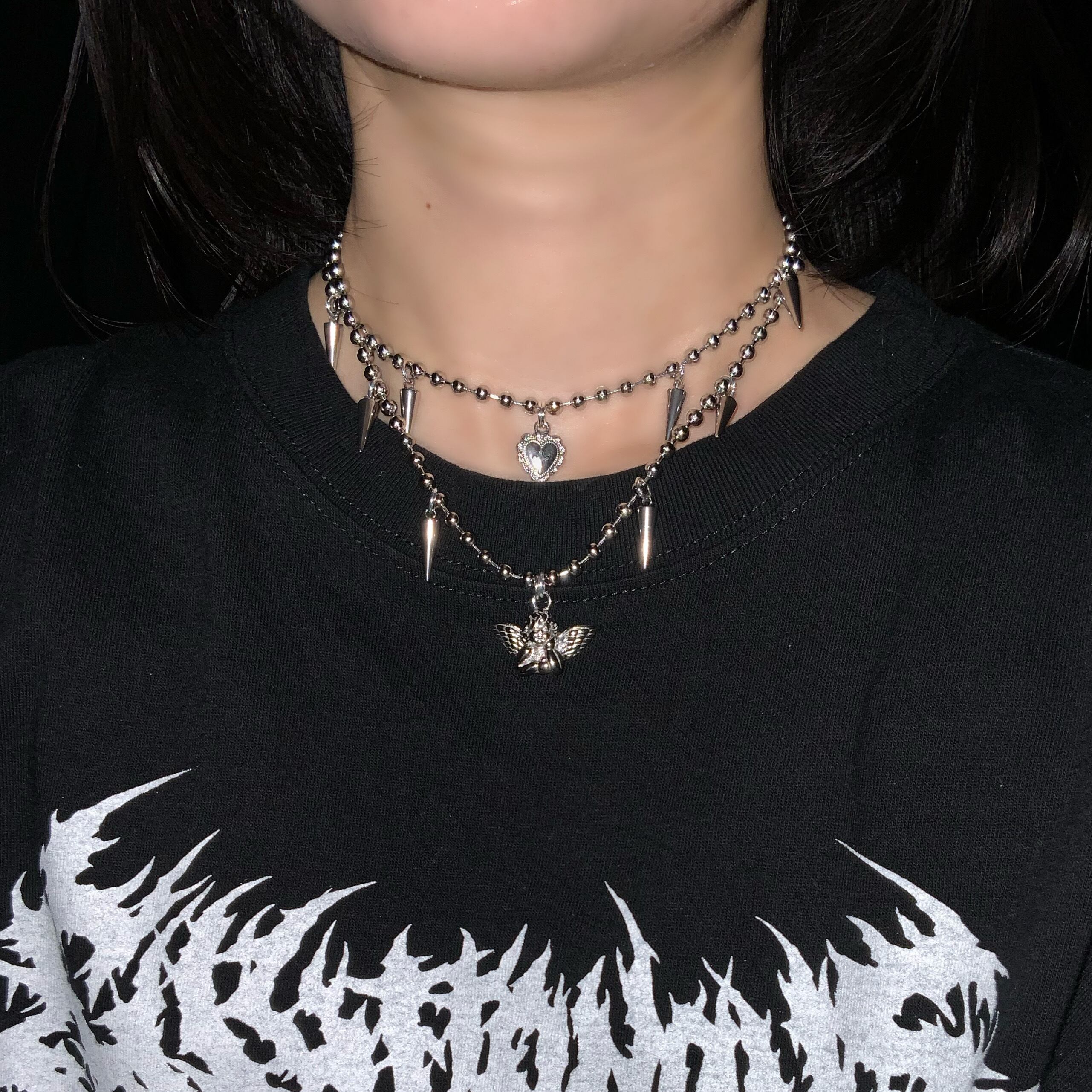 長いほうと、「毒牙」ネックレスとの重ね付けもかわいいです❣