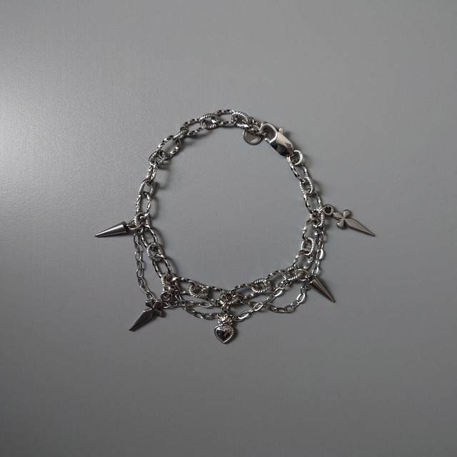 ⛧JiW JEWELRY 第肆作品群『聖邪』⛧ ⫘⫘2025.06.11 RELEASE⫘⫘ シンプルにかわいい、間違いないブレスレットです。 今回は同シリーズ同チェーンで仕上げ、パーツも同じものをそれぞれ組み合わせましたので、ネックレスと一緒に使うとさらにかわいいと思います。 もちろんサイズ調節可能でございます。 きれいめさんも攻め攻めさんも誰でも似合うアイテムだと思いますので、自信を持って見せびらかしましょう。 ・全長 約24cm※留め具含む(チェーンの限りサイズ調整可) ・重量 約29g ・材質 ステンレス(ミニロゴチャーム、チェーン、カン)     合金(チャーム4種、留め具) ※金属アレルギー非対応 ※サイズには多少の誤差が生じる場合がございます。あらかじめご了承ください。 ご注文から発送まで、通常3〜5日ほどお時間をいただいております。 ハンドメイド商品ということにご留意いただき、丁寧にお取り扱いください。 材料入荷時からの小さい初期キズ等がある場合がございますが、ハンドメイドならではの魅力と経年劣化もお楽しみいただけますと幸いです。