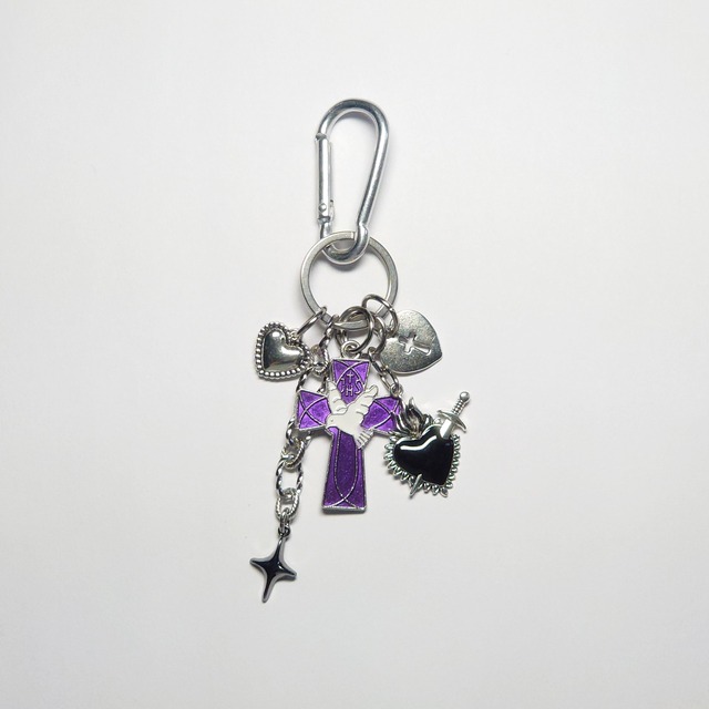 ⛧JiW JEWELRY 第肆作品群『聖邪』⛧ ⫘⫘2025.06.11 RELEASE⫘⫘ バッグに付けてもよし、スマホチェーン?スマホストラップ?にしてもよし、キーホルダーにしてもよし、ブレスレットにしてもよし(着脱結構大変ですが、、)なマルチチェーンです。 大きめのプッシュ式のカンが2つ付きますので、いろいろ使えちゃうのです。 ネックレス同様、トップのハートチャームはパカッと開きますので、推しや本命の写真も入れられます。 ハートが開きにくいときは、上のちょっと隙間があるところにシャーペンの先などを入れてくいっとやると開きます。 今回は同シリーズ同チェーンで仕上げ、パーツも同じものを組み合わせました。製作者のセンスが光っていますね。 是非、バッグやスマホをかわいく彩っちゃってください。 (※一部仕様が変更になっています。詳細は画像4枚目をご確認ください。) ・全長 キーホルダー部分 約11cm※キーリング含む     チェーン部分 約28cm※留め具含む     (プッシュリングカンは全長に含まれておりません) ・重量 約66g(プッシュリングカン含む) ・材質 ステンレス(ハートチャーム(大)、ミニロゴチャーム、チェーン、カン、キーリング)     合金(大ハート以外のチャーム、留め具(ナスカン、プッシュリングカン))     スチール(二重カン) ※金属アレルギー非対応 ※サイズには多少の誤差が生じる場合がございます。あらかじめご了承ください。 ご注文から発送まで、通常3〜5日ほどお時間をいただいております。 ハンドメイド商品ということにご留意いただき、丁寧にお取り扱いください。 材料入荷時からの小さい初期キズ等がある場合がございますが、ハンドメイドならではの魅力と経年劣化もお楽しみいただけますと幸いです。